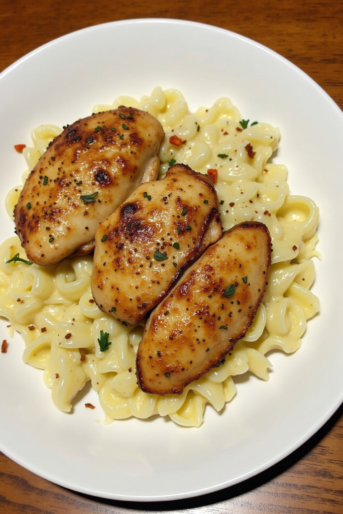What makes this pasta a weeknight superstar is its rich, cheesy sauce—crafted from fresh garlic, real Parmesan, and just the right amount of cream. Combined with tender, golden-seared chicken and perfectly cooked pasta, every forkful feels decadent (without hours in the kitchen). It’s quick, satisfying, and sure to become a household staple.