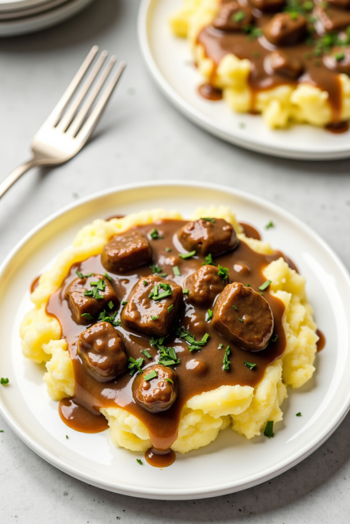 Start by browning the ground beef with onions and garlic for a savory base. A dash of Worcestershire sauce and a sprinkle of herbs deepen the flavor, while a simple roux ensures the gravy is rich and smooth. Adding beef broth and a touch of cream brings everything together for a sauce that’s spoon-licking good.